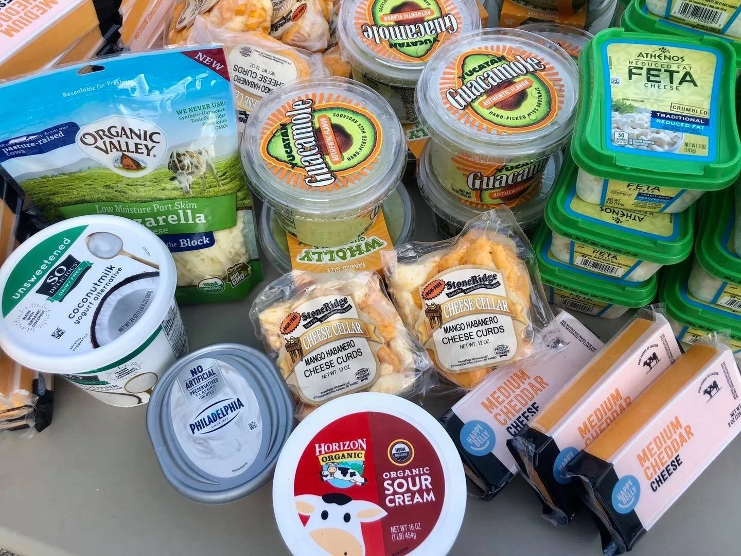 Produce, meat, bread, cheese and other dairy products. No expired items, please.